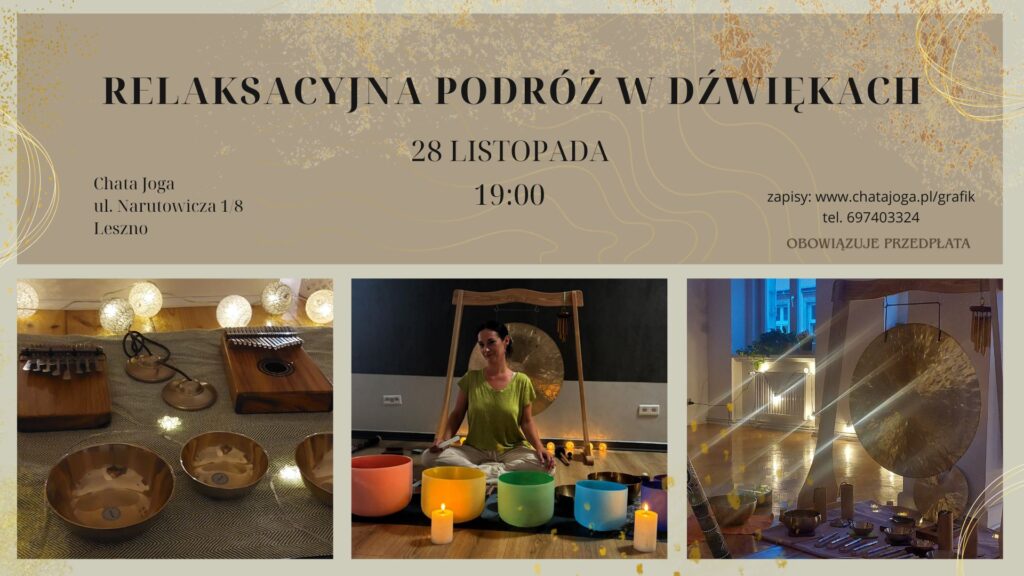 Zapraszamy na kolejne relaksacyjne zanurzenie się w dźwiękach instrumentów terapeutycznych, zwane też „kąpielą w dźwiękach” w przestrzeniach Chata Joga.